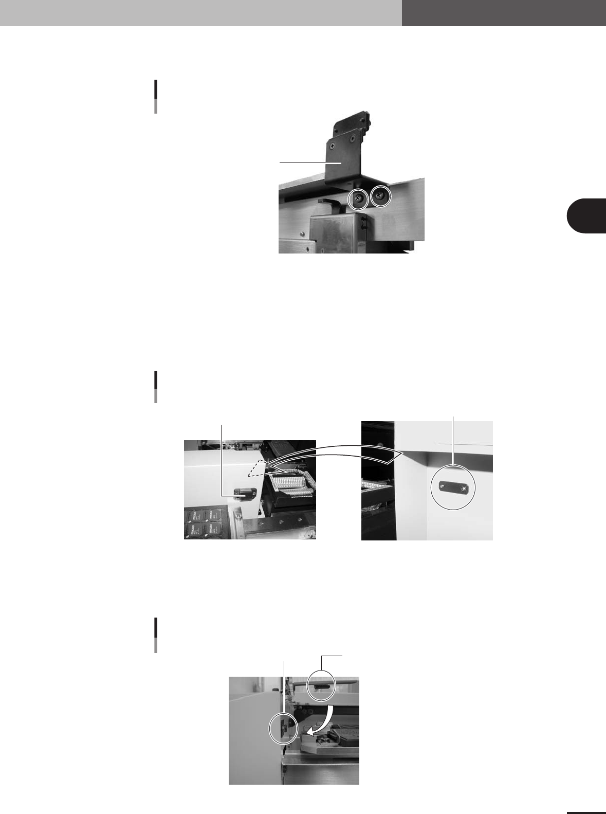 3- 3 3 3 ねじ 2 本を外し、マグネットキャッチ Assy を取り外します。 マグネットキャッチ1 マグネットキャッチAssy (標準位置) 27303-5V-00 4 上面安全カバーを全開にし、 TSF1 をポジション 1 に取り付けます。 5 …