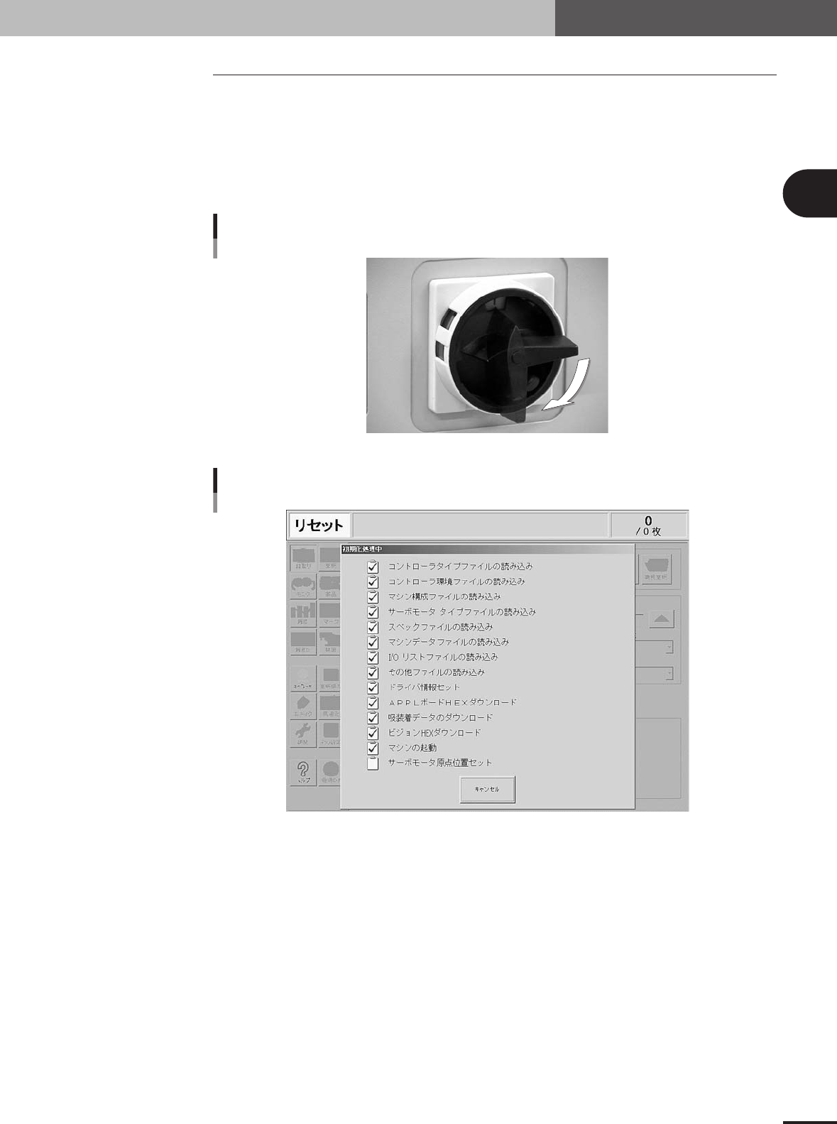 「原点復帰」ダイアログが表示されますので、画面の指示に従って原点復帰をしてくださ