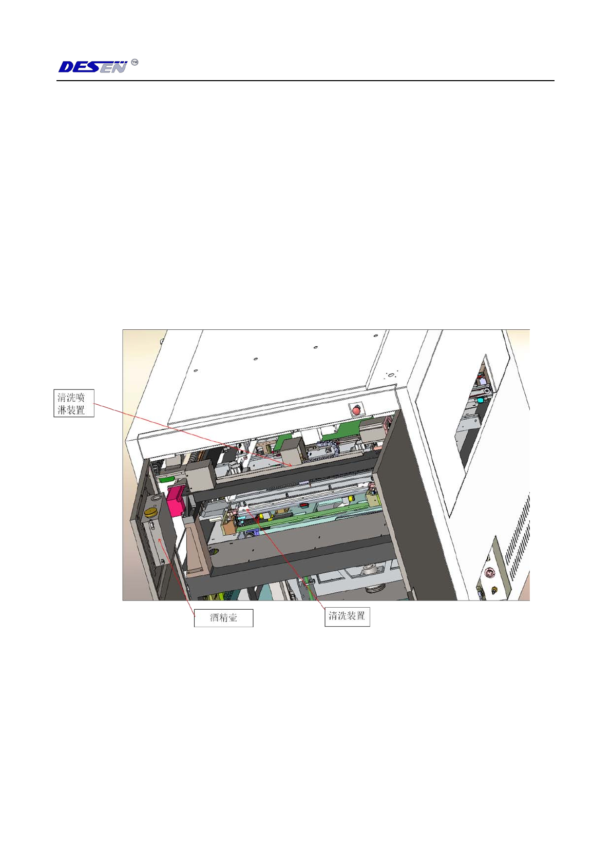 深圳德森精密设备有限公司 第一 章 系统描述 10 1. 4. 5 自动 网板清洗 装置 组成 : 包括真空管、真空泵、清洗液储存和喷洒装置、卷纸装置、升降 气缸等。网板清洗装 置被安装在视觉系统后面,通过视觉系统决定清洗行程,自动清洗网板底面。 进行清洗时清洗卷纸上升并 且贴着模板底面移 动,用过的清洗纸 被不断地绕到另一滚 筒上。清洗间隔时间可自由 选择,清洗行程可 根据印刷行程自行 设定。进行湿洗时, 当储存罐中清洗液不够时, 系…