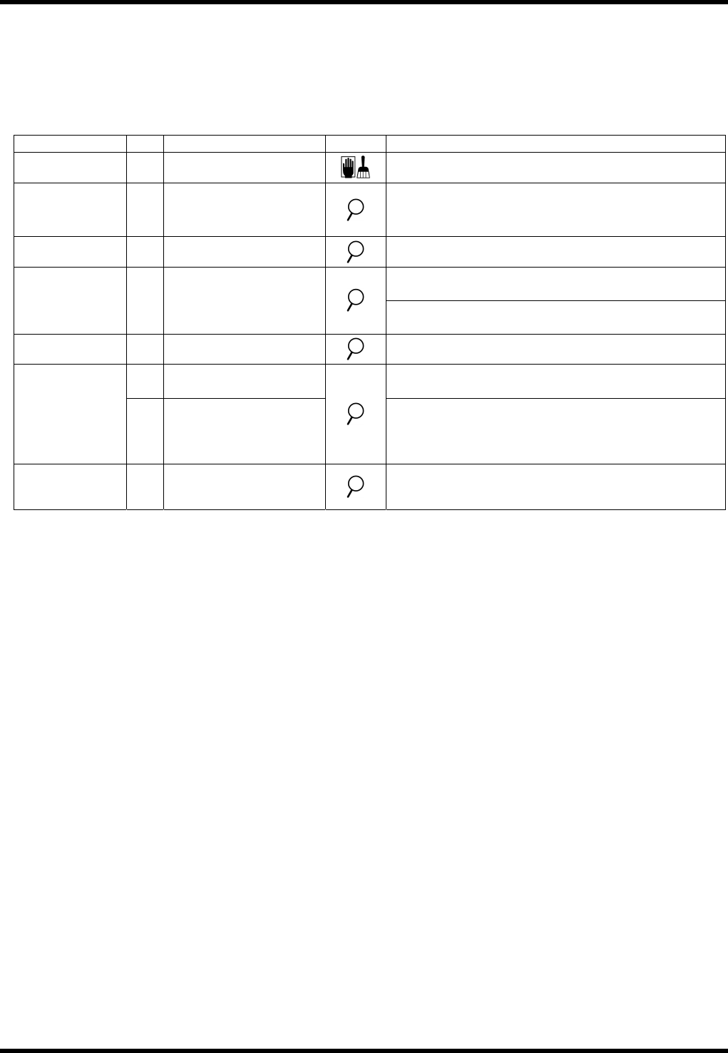 The following table summarizes the periodic inspection items that are to be performed weekly.