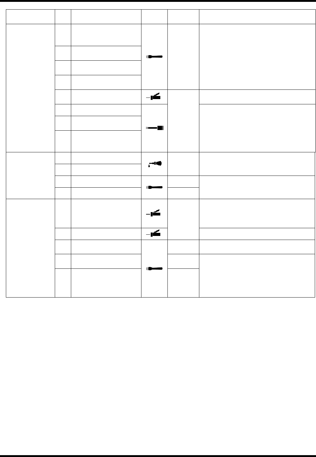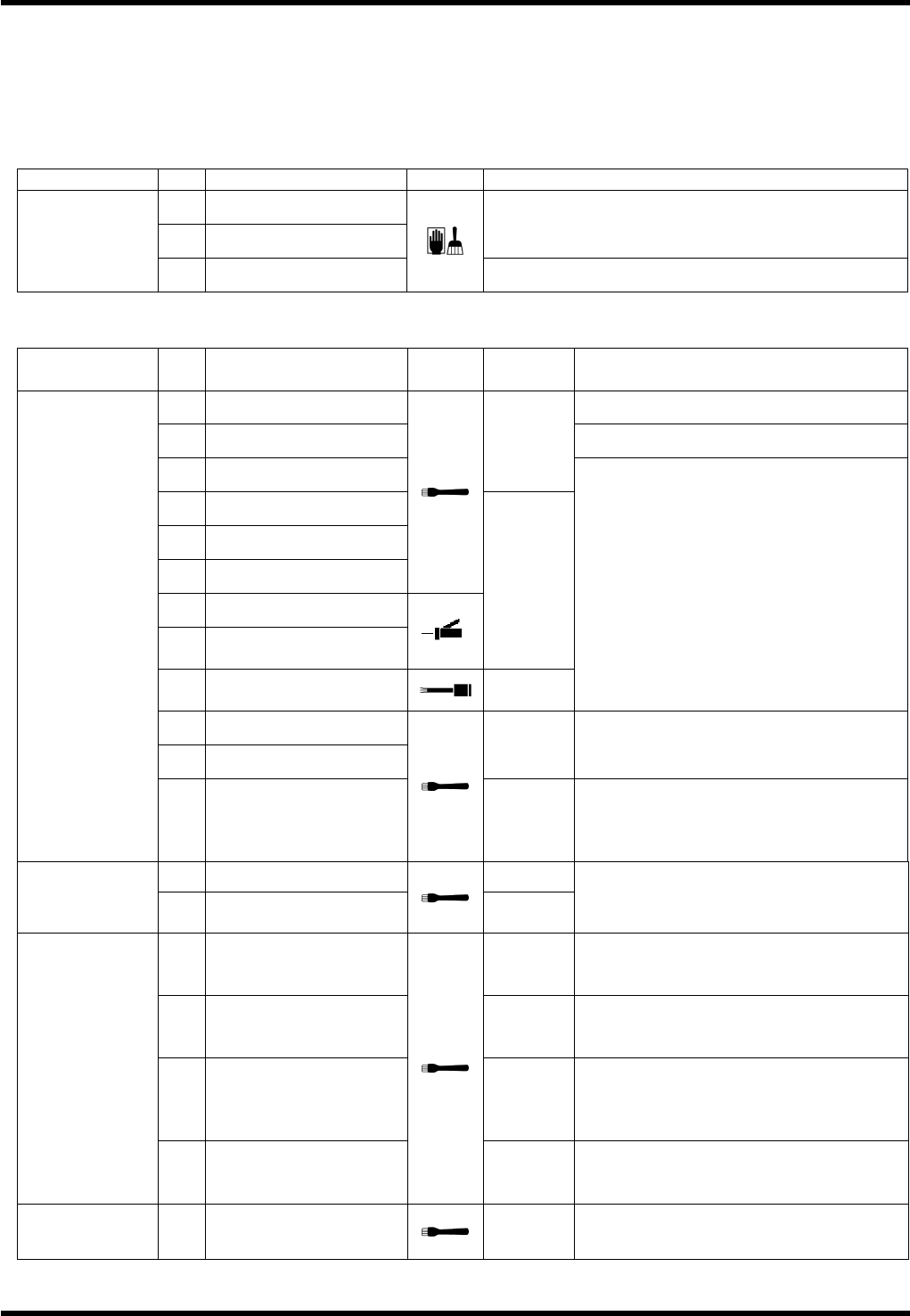 The following tables summarize the periodic inspection items that are to be performed every other week.