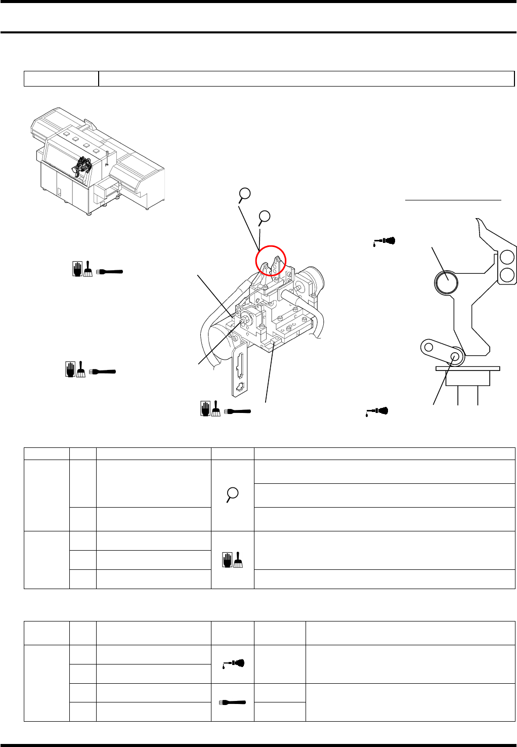 AV131 MAINTENANCE MANUAL 7.9 Anv il Unit D79MEC- Z4-400- A0 7.9- 2 7.9. 2 Lower A nvil Unit No. N610052019A A Oiling Perio d No . Item T ask Oilin g vol ume Descrip tion 1. Sli ding surf aces between the rol l er f oll…