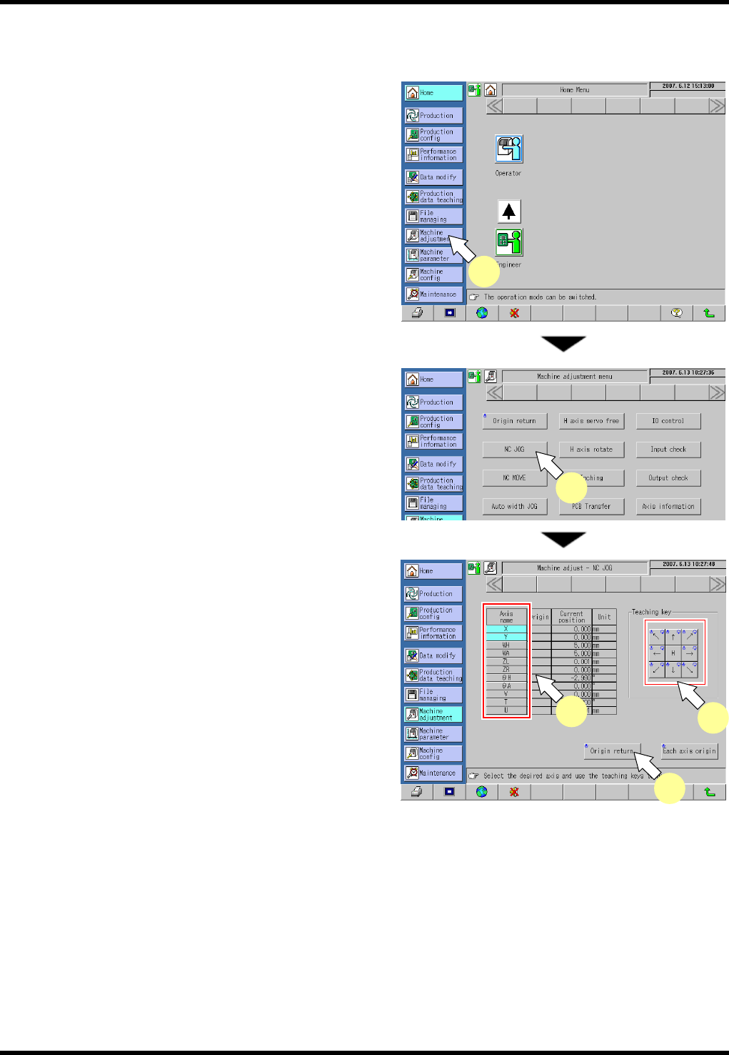 AV131 MAINTENANCE MANUAL 9.1 M o v ement Check D79MEC- 71-010-A0 9.1- 3 3. P res s <EN ABL ING > + [Orig in retu rn] . T his ret urns all axes to thei r ori g i ns. 3