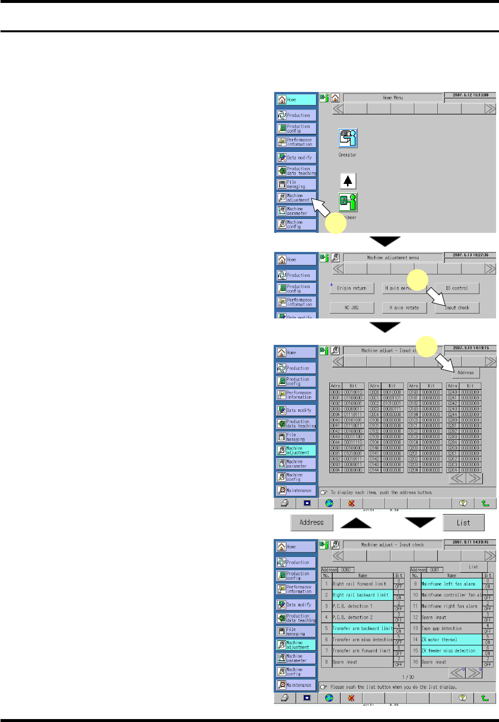 The “Machine adjust - Input check” screen