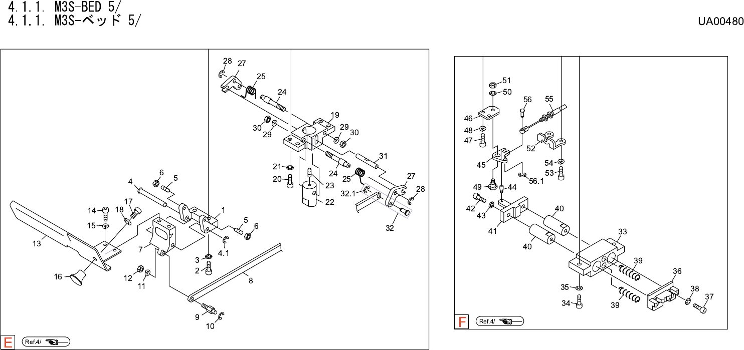 4.1.1. M3S-BED 5/ 4.1.1. M3S- ベッド 5/ UA00480 No. Drg.No. & Code No. QTY Description Rating Materials Remark 番号 図番 & コード番号 個数 品名 規格 材質 備考 1 PT00100 1 BKT BKT FE 2 H5299A 2 BOLT, HEX SOCKET ボルト 六角穴 M05X012 FE 3 W1…