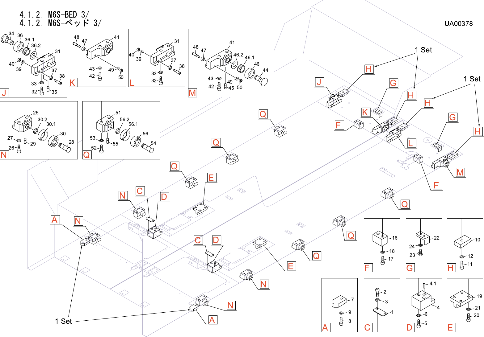 4.1.2. M6S-BED 3/ 4.1.2. M6S- ベッド 3/ UA00378 No. Drg.No. & Code No. QTY Description Rating Materials Remark 番号 図番 & コード番号 個数 品名 規格 材質 備考 1 PB00501 2 PLATE プレート FE 2 H5274A 4 BOLT, HEX SOCKET ボルト 六角穴 M03X006 FE 3…