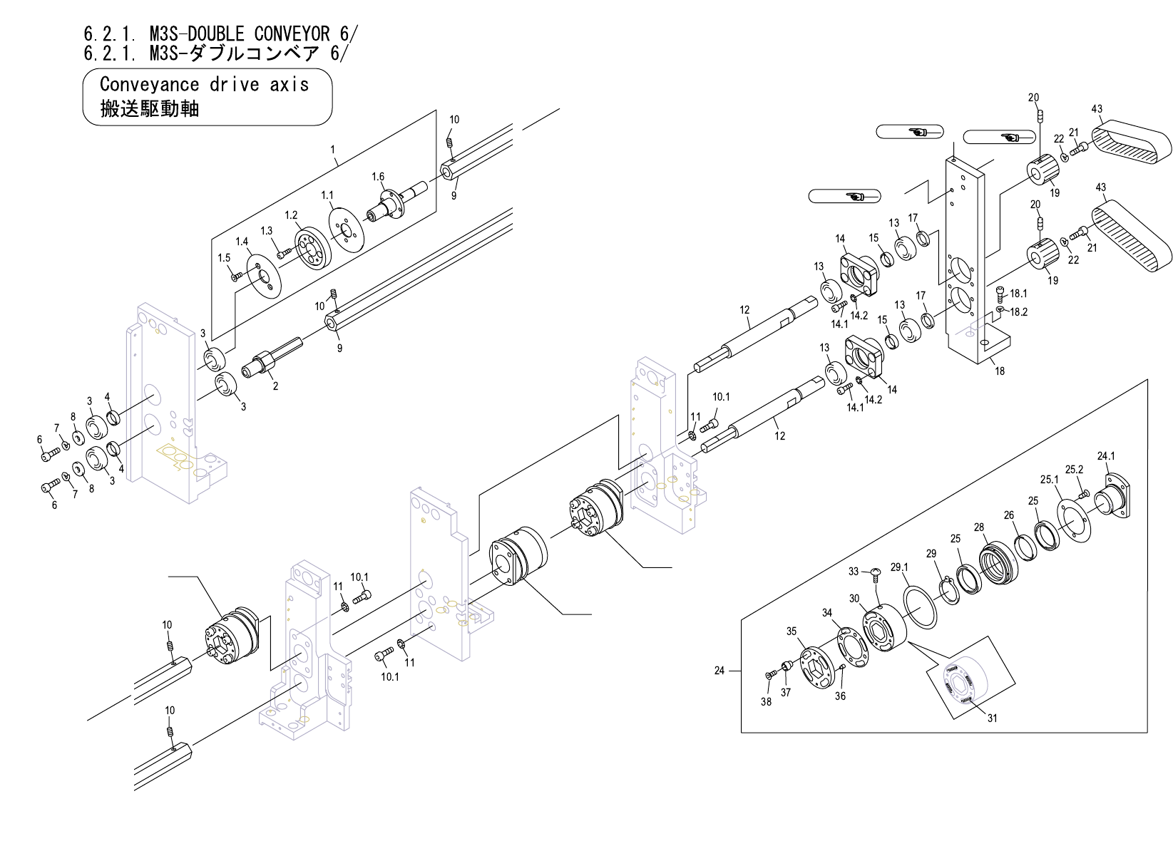 6.2.1. M3S-DOUBLE CONVEYOR 6/ 6.2.1. M3S- ダブルコンベア 6/ UQ01232 No. Drg.No. & Code No. QTY Description Rating Materials Remark 番号 図番 & コード番号 個数 品名 規格 材質 備考 1 AA1EE04 1 PULLEY プーリ OT 1.1 PM61044 1 FLANGE フランジ FE 1.2…