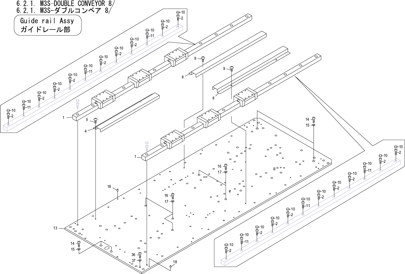 6.2.1. M3S-DOUBLE CONVEYOR 8/ 6.2.1. M3S- ダブルコンベア 8/ UQ01232 No. Drg.No. & Code No. QTY Description Rating Materials Remark 番号 図番 & コード番号 個数 品名 規格 材質 備考 1 XG00130 2 GUIDE, RAIL ガイド レール SSR15XW3UUCIS+684LY- Ⅱ OT …