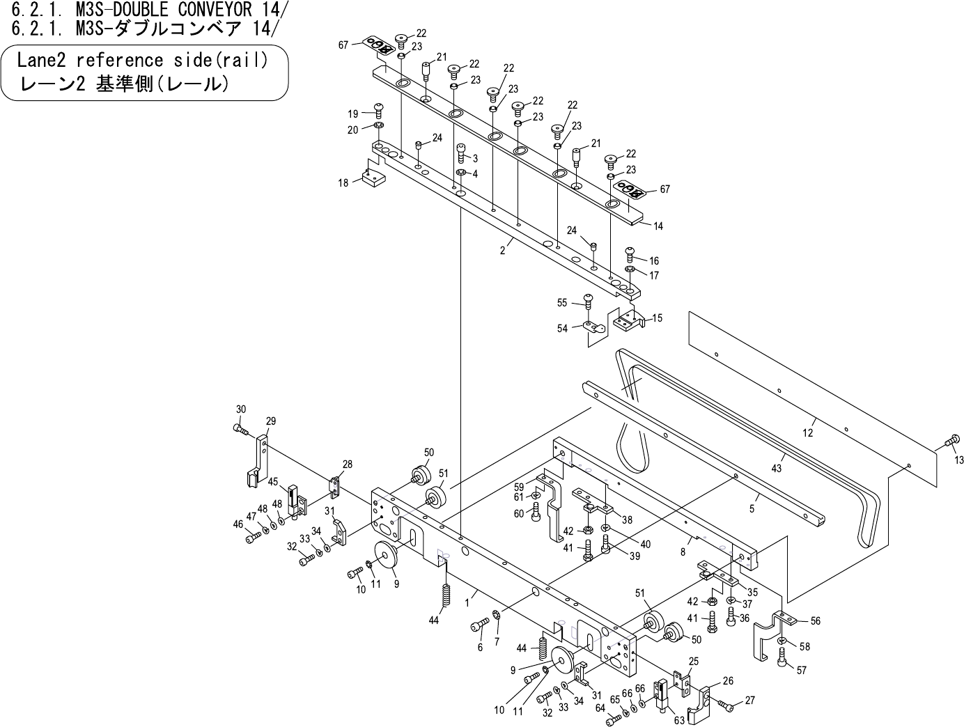 6.2.1. M3S-DOUBLE CONVEYOR 14/ 6.2.1. M3S- ダブルコンベア 14/ UQ01232 No. Drg.No. & Code No. QTY Description Rating Materials Remark 番号 図番 & コード番号 個数 品名 規格 材質 備考 1 PM92310 1 PLATE プレート FE 2 PM11605 1 RAIL レール FE 3 H528…