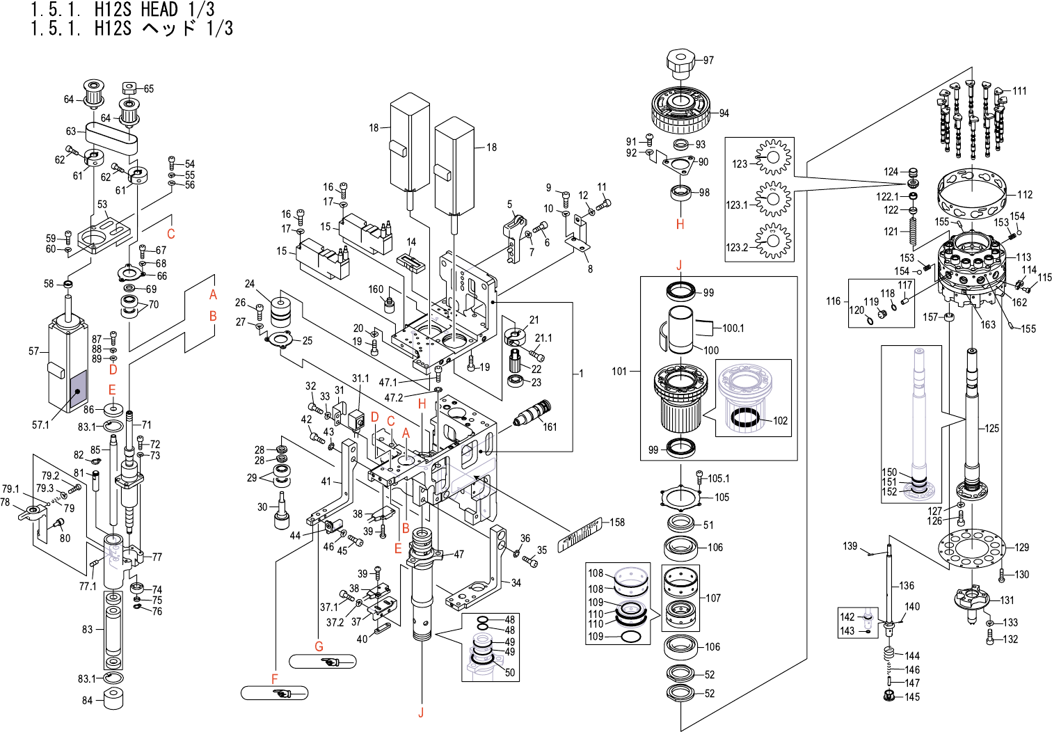 1.5.1 H12S HEAD 1/3 1.5.1 H12S ヘッド 1/3 UH01506 No. Drg.No. & Code No. QTY Description Rating Materials Remark 番号 図番 & コード番号 個数 品名 規格 材質 備考 1 AA2GT04 1 BODY 本体 OT 5 AA06D04 1 ROLLER ローラ OT 6 H5278A 2 BOLT, HEX SO…