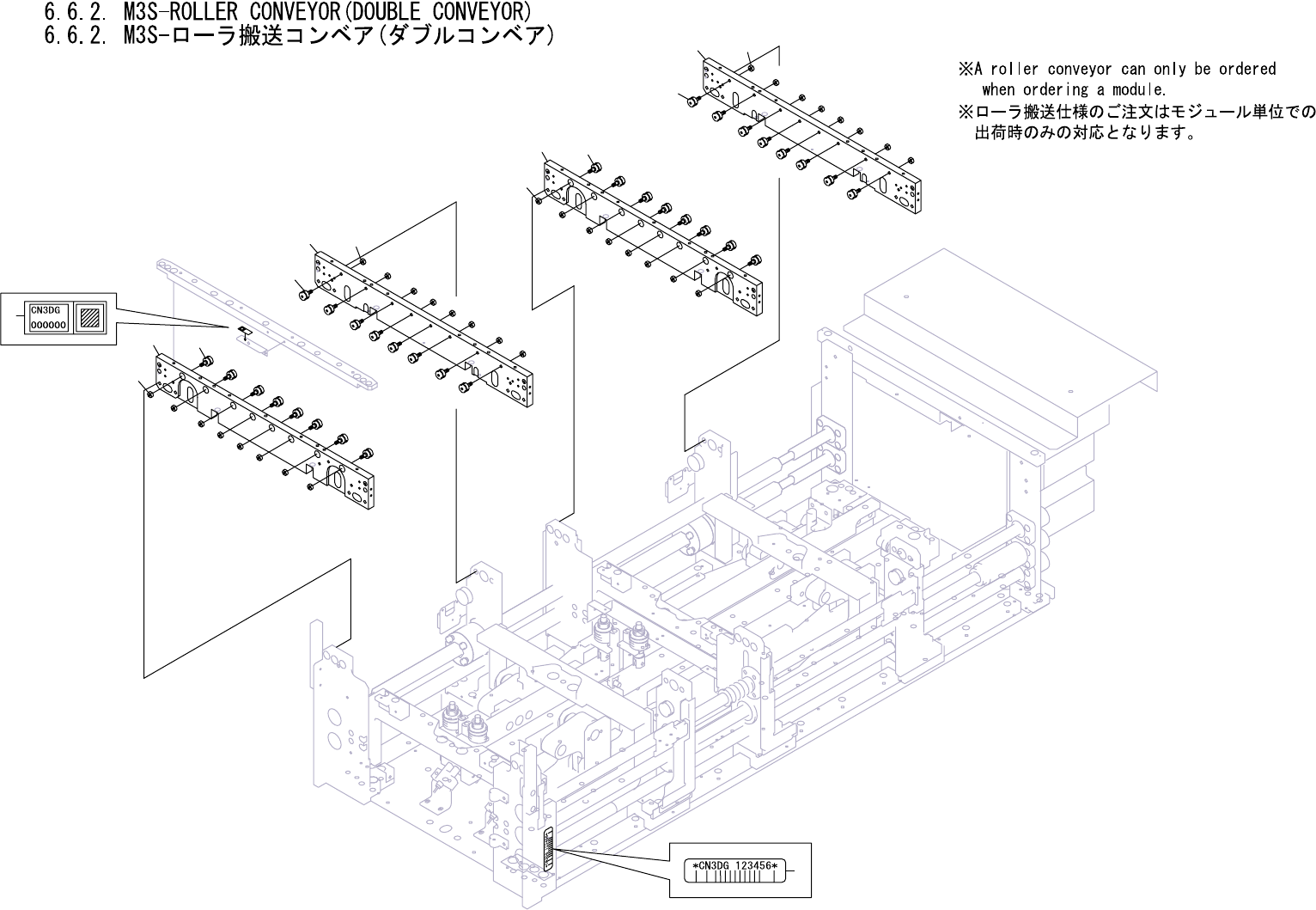 6.6.1. M3S-ROLLER CONVEYOR(SINGLE CONVEYOR) 6.6.1. M3S- ローラ搬送コンベア ( シングルコンベア ) AA3AD01 No. Drg.No. & Code No. QTY Description Rating Materials Remark 番号 図番 & コード番号 個数 品名 規格 材質 備考 1 PM90101 1 PLATE プレート FE 2 XR00…