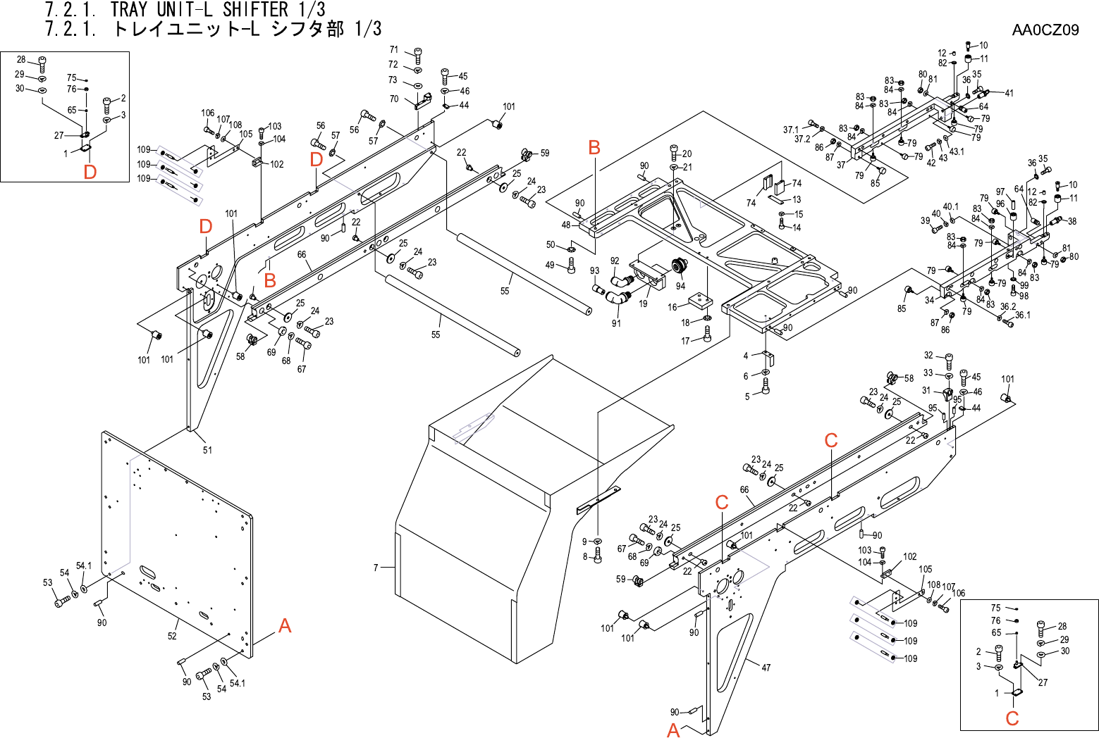 7.2.1. TRAY UNIT-L SHIFTER 1/3 7.2.1. トレイユニット -L シフタ部 1/3 AA0CZ09 No. Drg.No. & Code No. QTY Description Rating Materials Remark 番号 図番 & コード番号 個数 品名 規格 材質 備考 1 PB15301 4 PLATE プレート FE 2 H5266A 8 BOLT, HEX SOCKET…