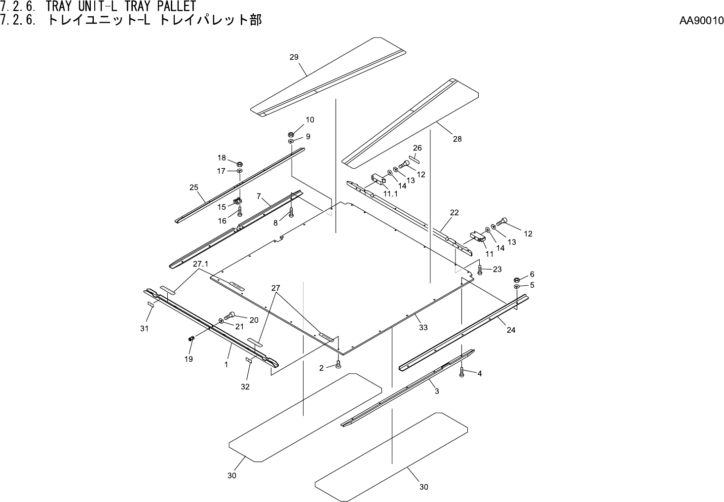7.2.6. TRAY UNIT-L TRAY PALLET 7.2.6. トレイユニット -L トレイパレット部 AA90010 No. Drg.No. & Code No. QTY Description Rating Materials Remark 番号 図番 & コード番号 個数 品名 規格 材質 備考 1 PB14153 1 BKT BKT FE 2 K5169T 6 SCREW, C/R COUNTERS…