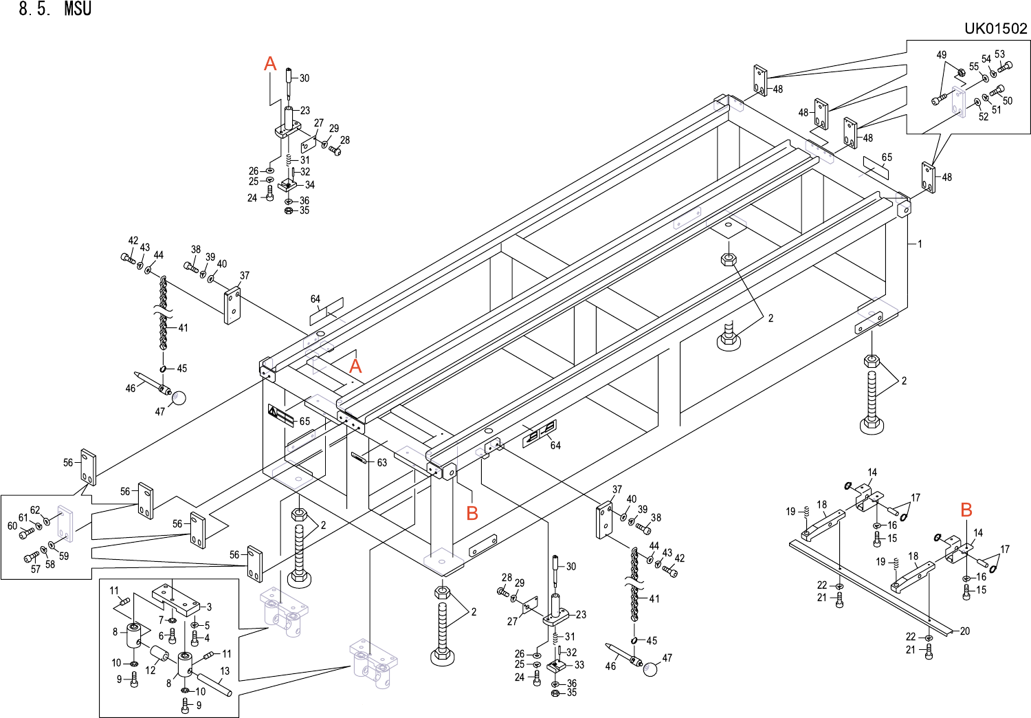 8.5. MSU UK01502 No. Drg.No. & Code No. QTY Description Rating Materials Remark 番号 図番 & コード番号 個数 品名 規格 材質 備考 1 PM61014 1 FRAME フレーム FE 2 A1250D 4 ADJUSTER アジャスタ FJSN20-130 OT 3 PM55783 2 PLATE プレート FE 4 H5343B 4…
