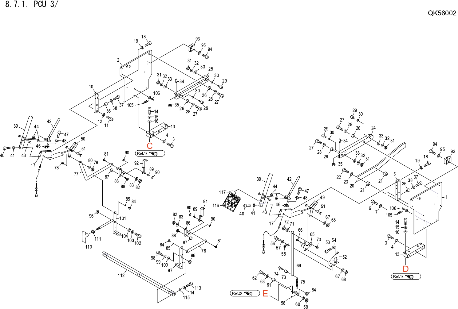 8.7.1. PCU 3/ QK56002 No. Drg.No. & Code No. QTY Description Rating Materials Remark 番号 図番 & コード番号 個数 品名 規格 材質 備考 1 PM88041 1 PLATE, ARM プレート アーム AL 2 PM88051 1 PLATE, ARM プレート アーム AL 3 H5326A 3 BOLT, HEX SOCKET…