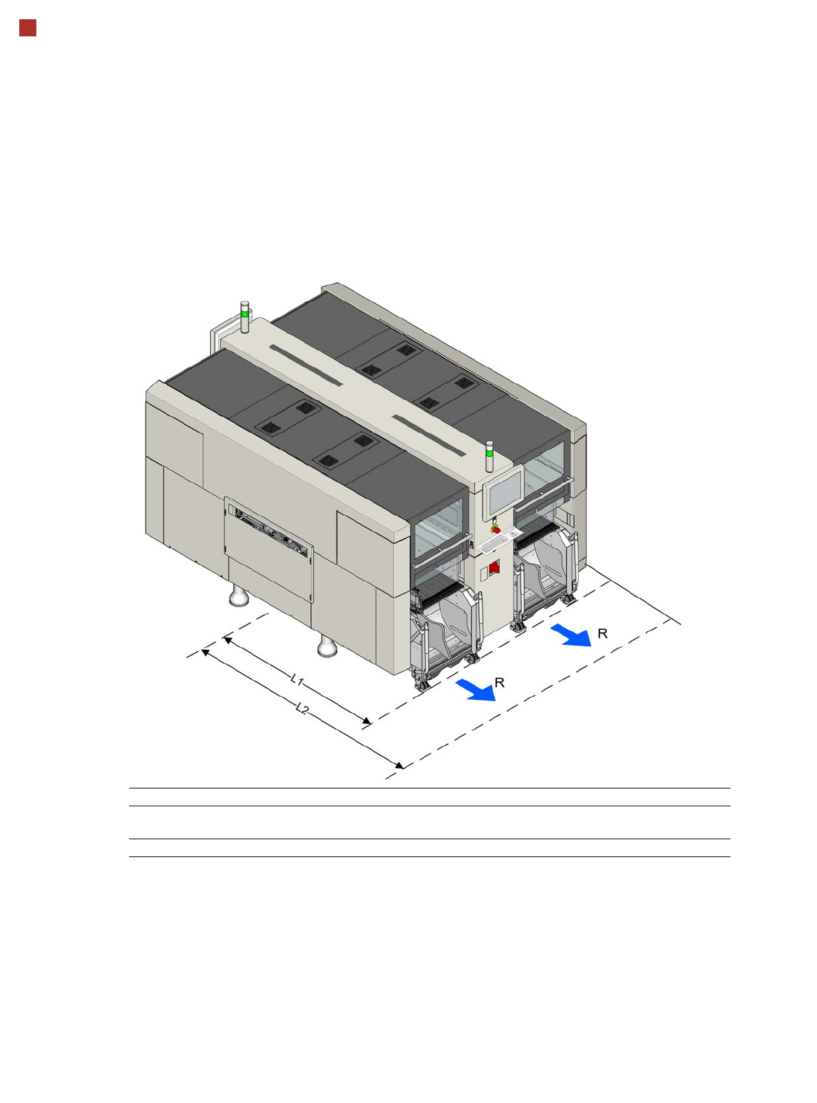 Distance L1: Machine center to outer edge of X component
