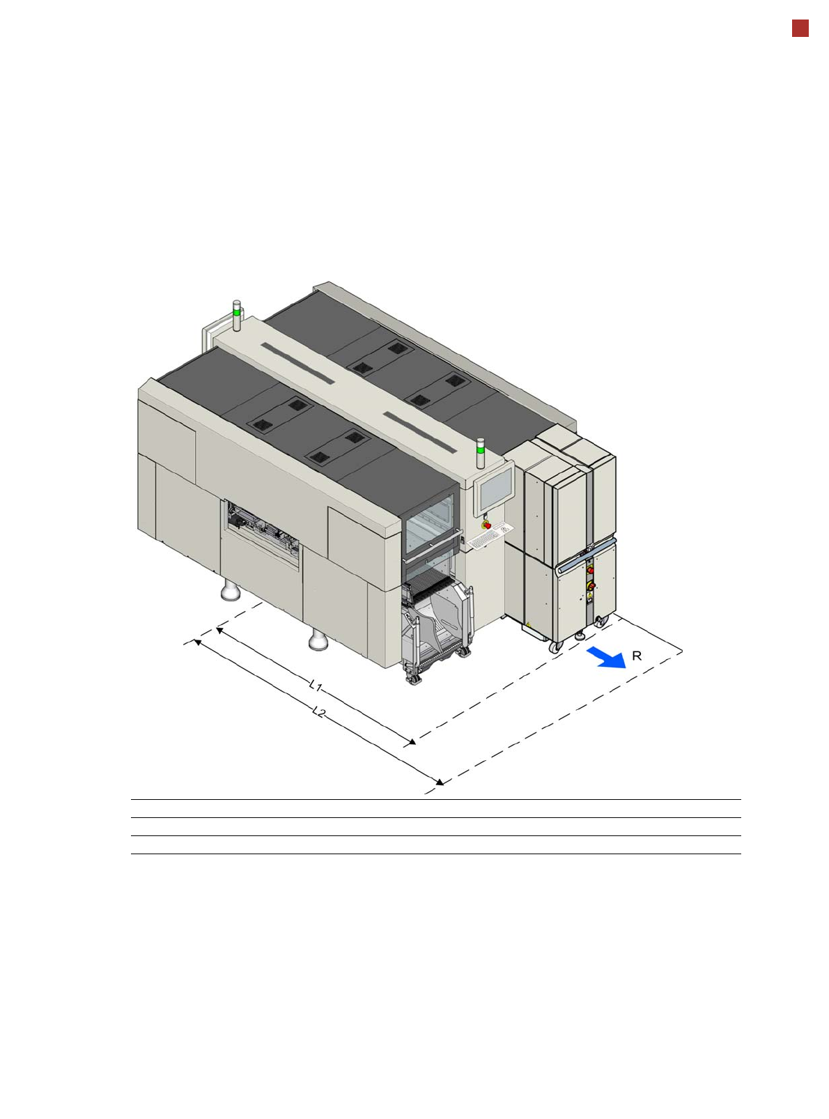 Placement machine dimensions