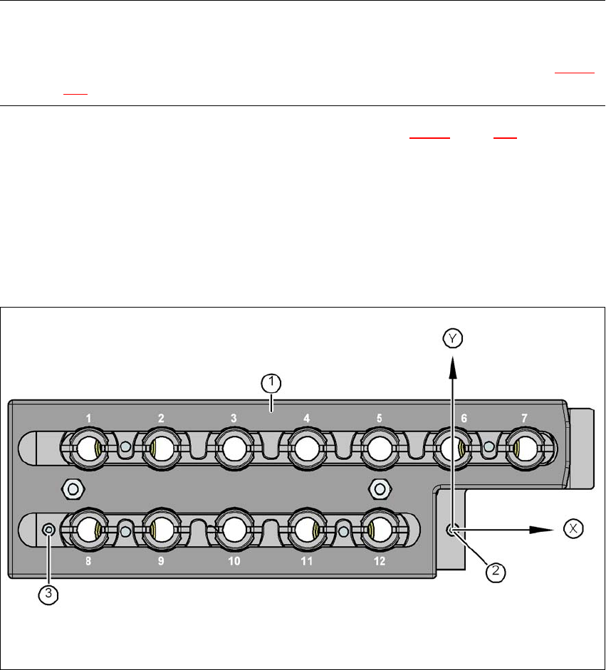Fig. 6.1 - 5 Nozzle magazine - holder numbering, fiducials for determining the position and angular position
