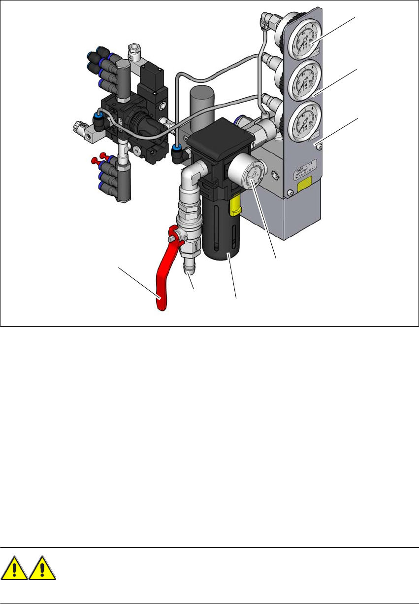 compressed air to the machine can be interrupted with the shutoff valve (item 2 in fig. 2.9 - 1