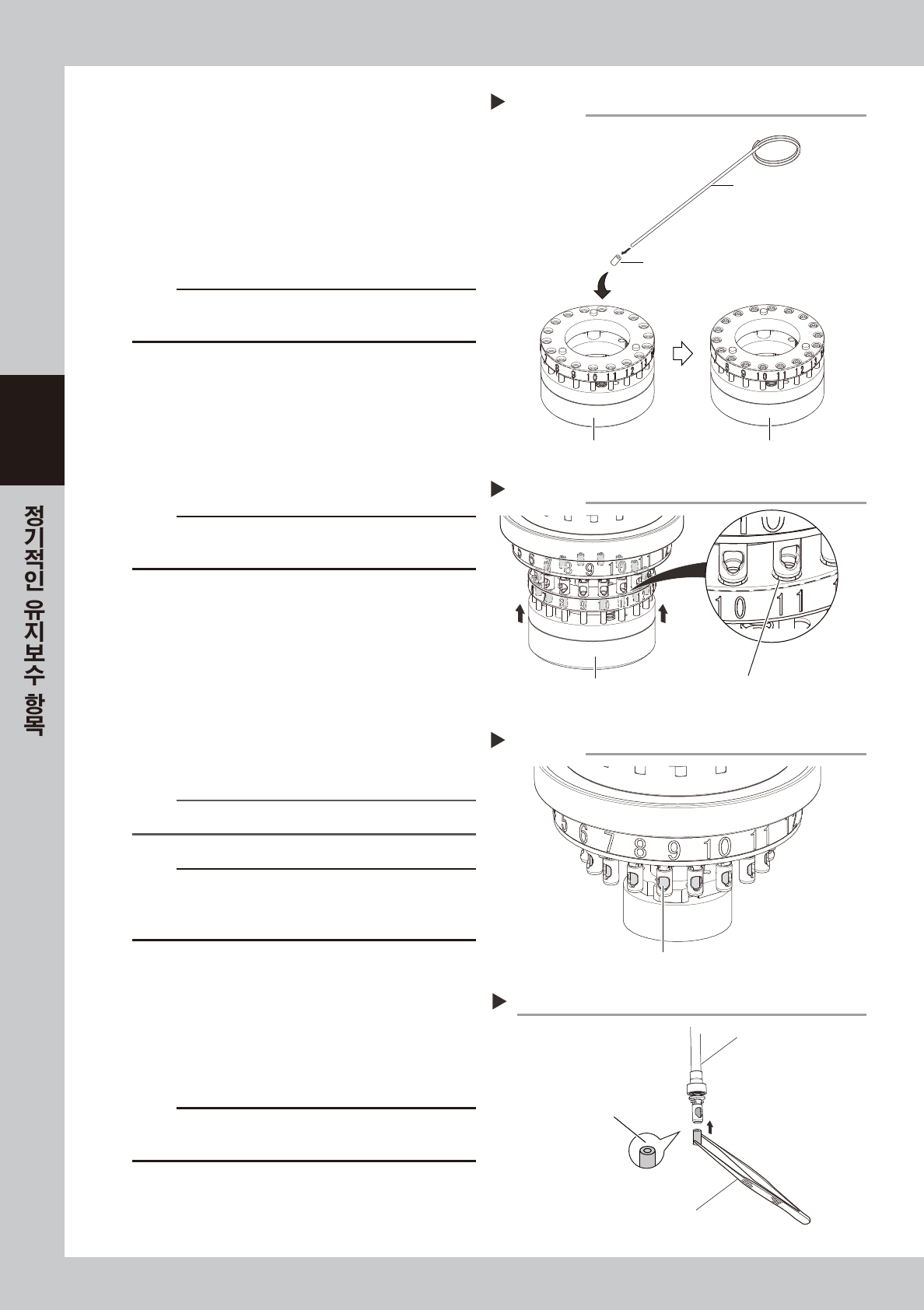각 노즐 샤프트를 손으로 내려서 유지보수 작업을 한 후에 , 모