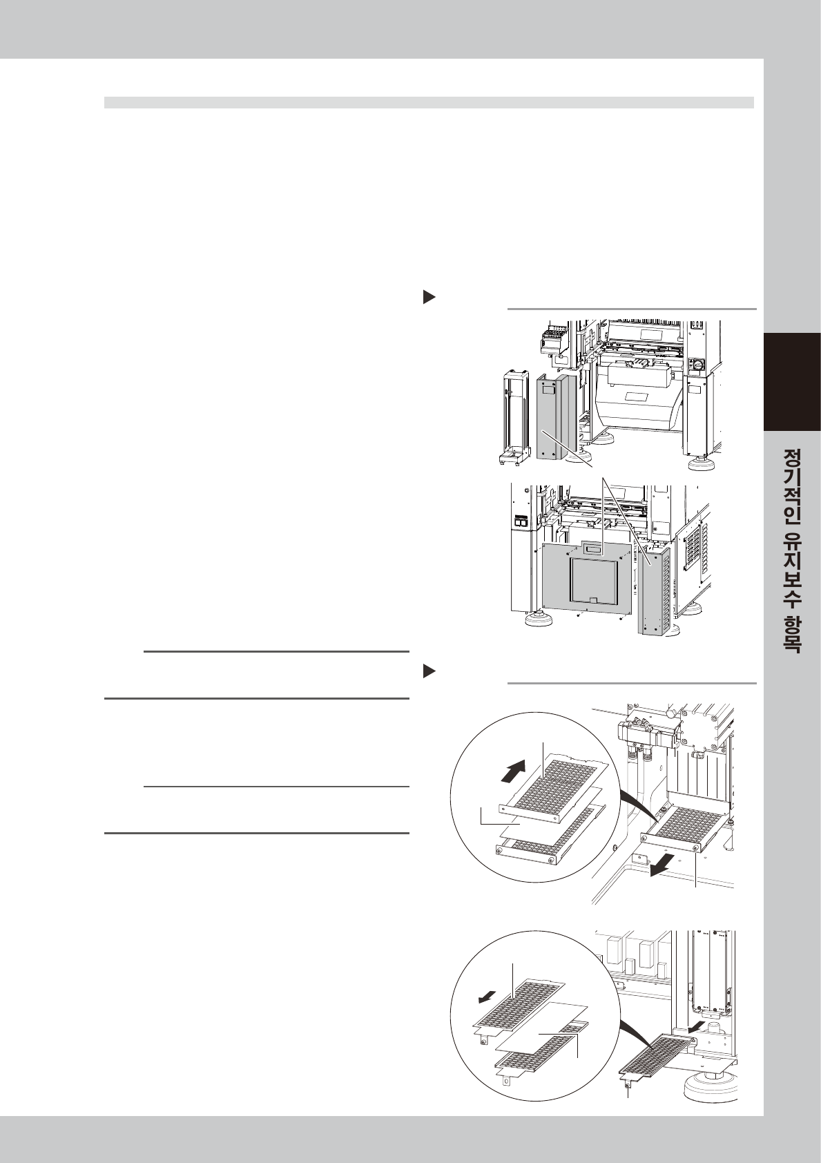 다. 장비의 기능저하 및 수명단축의 원인이 될 수 있으므로 , 정기적으로 각 필터의 청소를 실시해 주십시오 .
