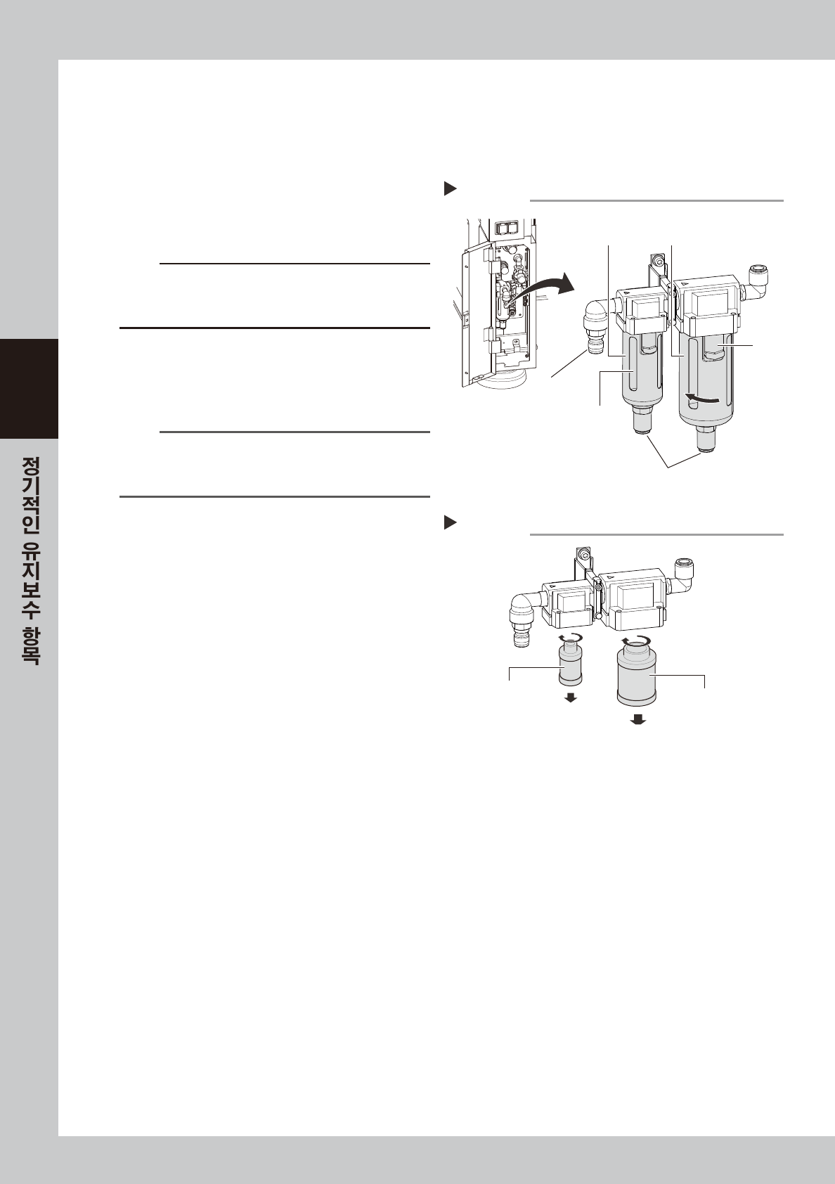 필터 및 미스트 필터가 사용되고 있습니다. 이들 필터의 점검•청소 및 필터용 미디어( 엘리먼트 필터 ) 의