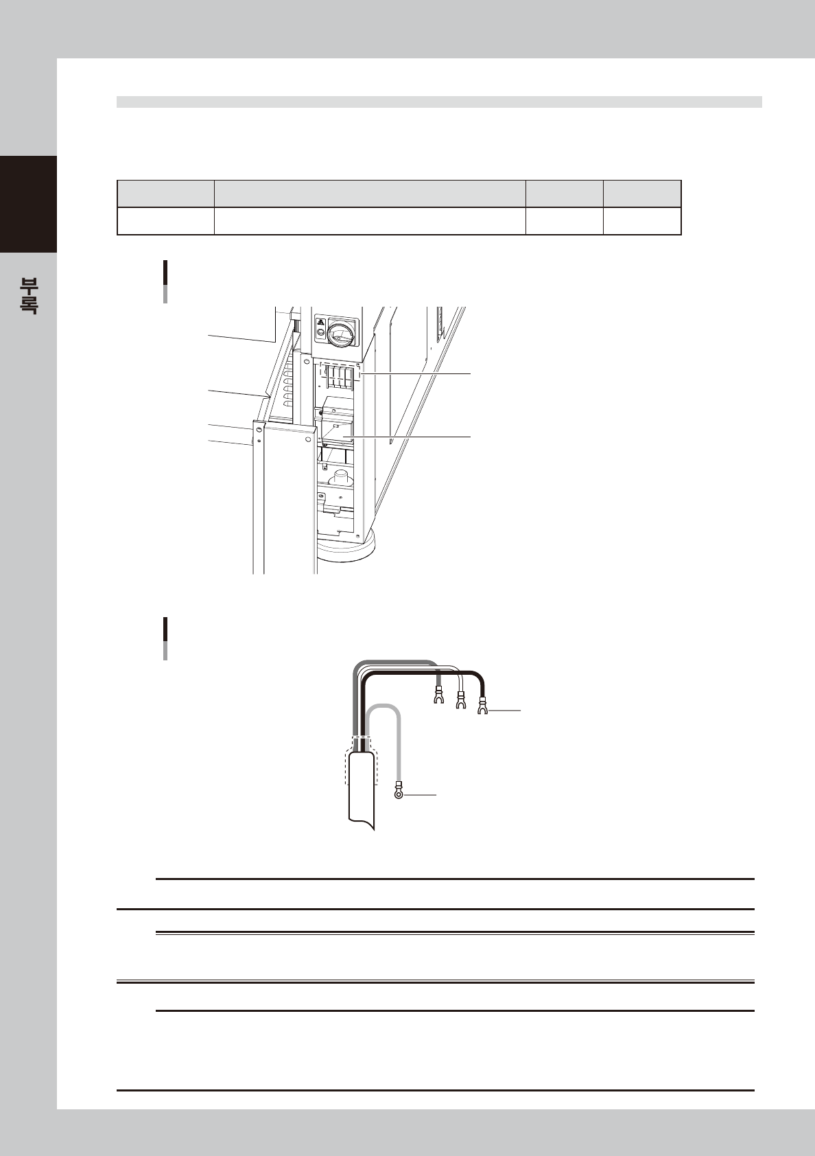 전원 케이블에는 , 도체 단면적이 10 ㎟ 이상의 것을 사용하여 주십시오 .