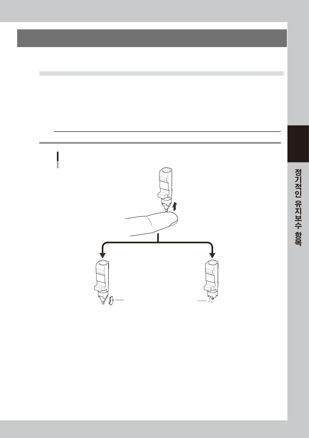 노즐의 선단부를 눌러서 확인할 때에는 , 너무 세게 누르지 마십시오 . 1mm 정도 눌러서 원상태로 돌아오면 문제없습니다 .