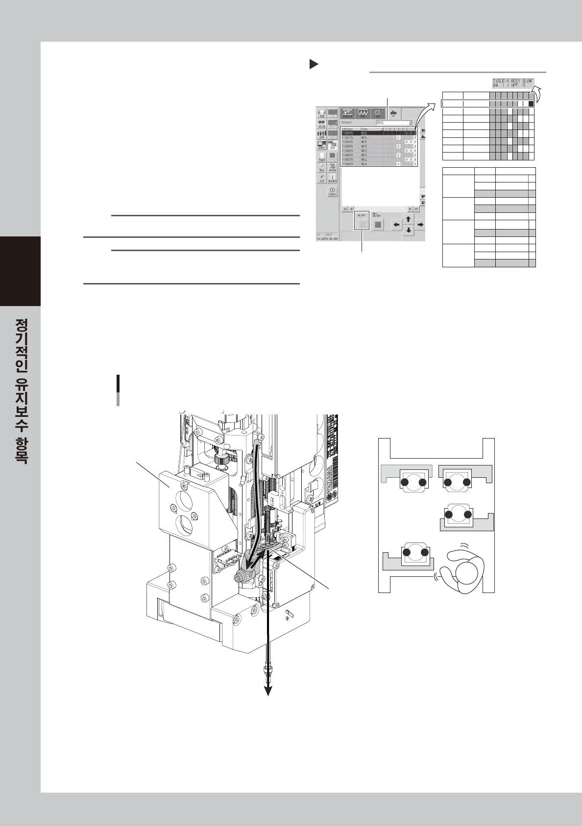 3-83 3 7 모든 스 풀 을 「진공위치」 로 세 팅합니다 . 손 으로 해당하 는 헤 드유 닛의 모 든 스풀을 상승단 ( 진공 위치 ) 까지 올 립니다 . 57 3F1- N 9 - 0 0 참고 스 풀 의 상승 단은 , 손 가락 으로 들어 올려 서 저 항 없 이 올려 지 는 위 치 입 니 다 . 샤 프트 에 있 는 기 어 ( 상 측 기 어 ) 의 중 간쯤 까 지 스 풀 이 올 라 갑 니 다.…