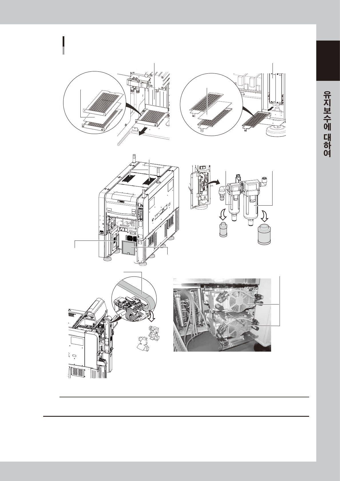1-1 1 1 소모품 옵션 구입품 에어 필터 오일 미스트 필터 필터 엘리먼트 엘리먼트 어셈블리 컨트롤러 먼지필터 시스템 컨트롤러 󳋴 장비 배면 뒤쪽 베이스 팬 부분 필터 컨베이어 I/O부 필터 천장 팬 부분 필터 컨트롤러 먼지필터 서보 컨트롤러 진공 펌프 Y축 케이블 베어 체인 링크 5710 6 - N9 - 0 0 c 주의 본 매뉴얼 에 기재되어 있는 부 품 ( 부 품번 호 ) 은 발행시의…