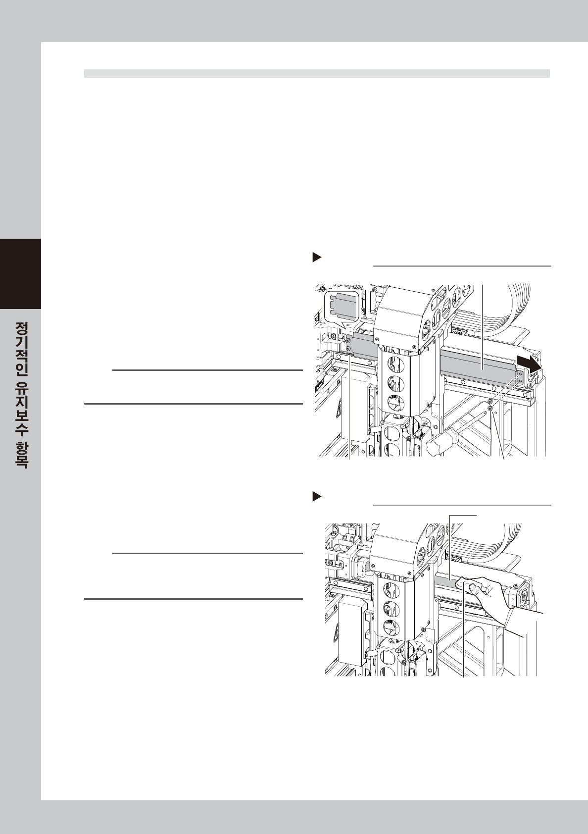 각 축의 볼스크류 및 가이드에서 이상한 소리가 발생할 경우에 , 판매 대리점 또는 야마하로 연락해 주십시오 . 자체적인 분해 청소는 보