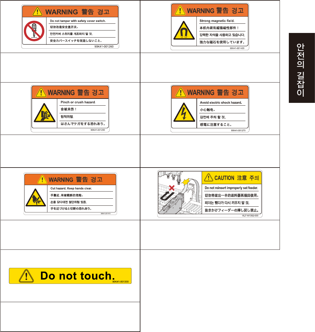 vii 장비의가 동 부에몸 이닿아서다 칠우려가있 습니다 . 경우 에따라서는사 망 ,부 상또는장비의고장 원인이됩니다 . 커버 스위 치를 만지 거나 개조하지 않는다 . 커버 스위치가 해제되어 있는 상태에서는 운 전하지 말 것 . 강자계에 관한 주의 사항을 반드 시 이해할 것 . 가 동 부와커버에손이끼여서다 칠우 려가있습니다 . 가 동 부에손이나손가 락이…