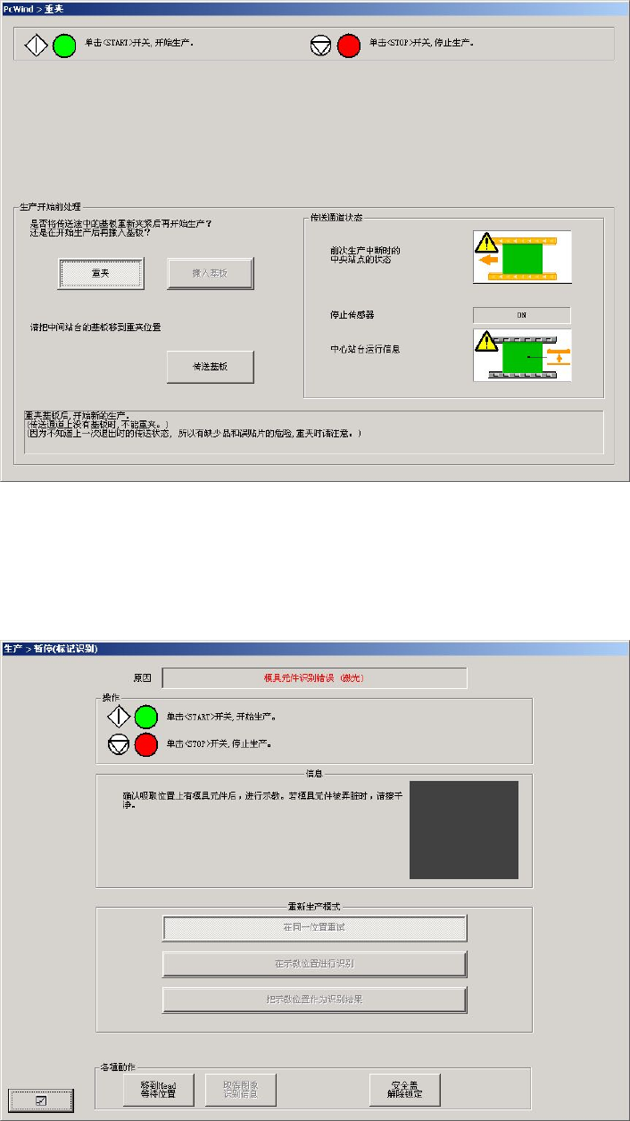 ⑧ 生产开始时,对基板上面的模具元件进行识别,如果发生识别错误时,即显示如下画面。进行吸取