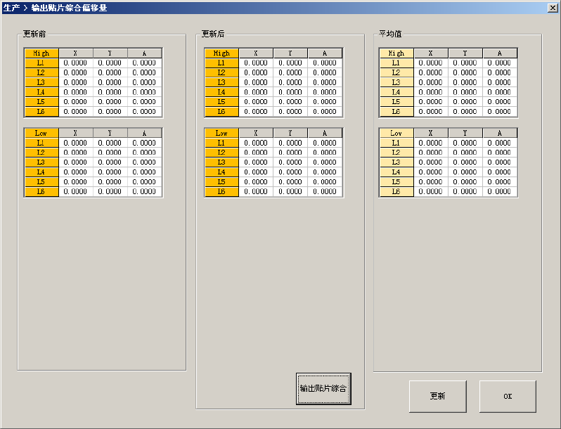 请按下贴片综合偏移量的[更新]按钮,保存参数。