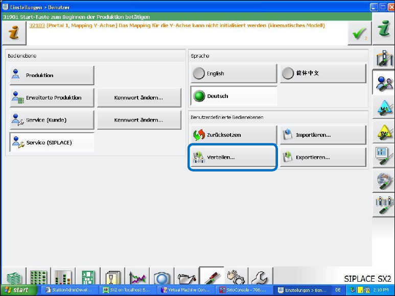 Geänderte Berechtigungen müssen manuell über die Schaltfläche Verteilen an SIPLACE Pro