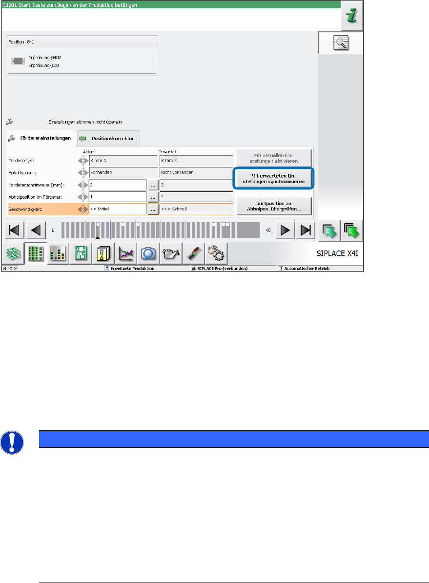 geänderten Rüstdaten von SIPLACE Pro wieder an der Station vorgegeben. Dort