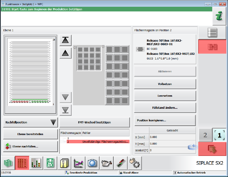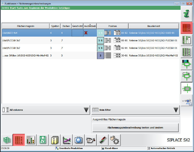 Flächenmagazin-Beschreibungen, die in SIPLACE Pro als unvollständig markiert sind, können nun