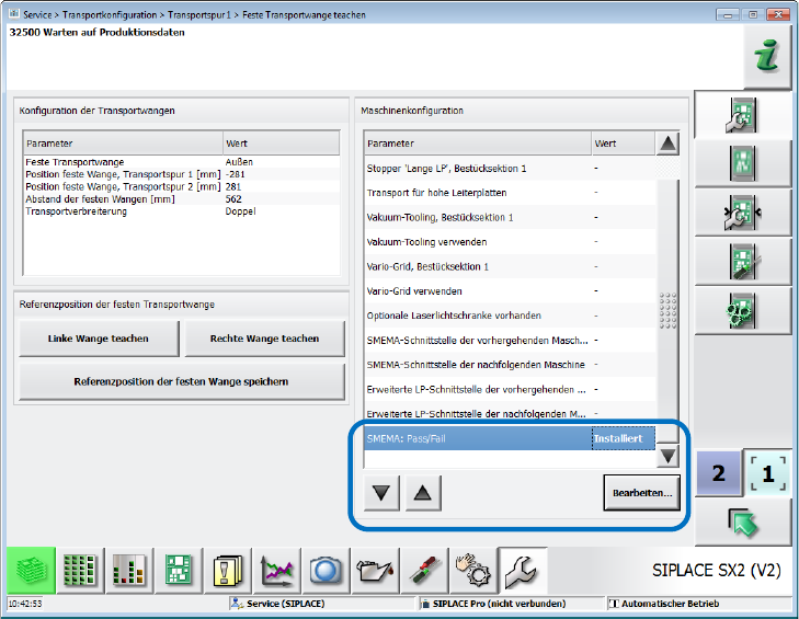 Für die SMEMA-Schnittstelle ist die neue Transportoption SMEMA: Pass/Fail eingeführt worden.