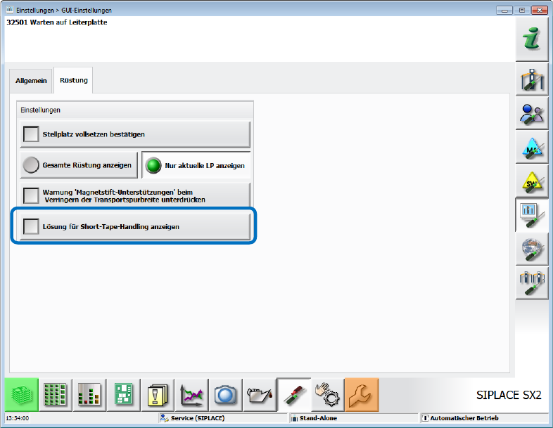 Abbildung 8-12: Einstellung Lösung für Short-Tape-Handling anzeigen