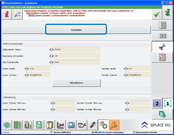 Die Schneidzeiten pro Druckluftzylinder können auf der GUI der Stationssoftware angezeigt