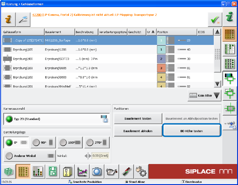Schreibrechte auf die Gehäuseform in der SIPLACE Pro-Datenbank haben und auch die