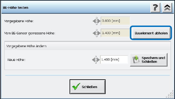 Das Abholen des Bauelements mit der neu gemessenen Höhe kann über die Schaltfläche