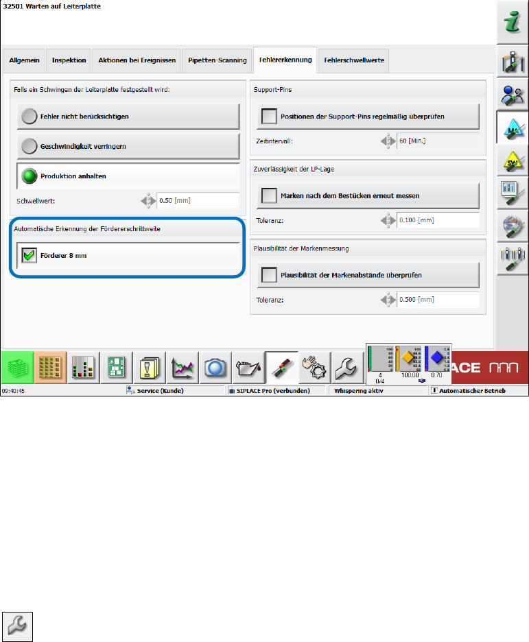 Abbildung 9-13: Erkennung der Fördererschrittweite aktiviert