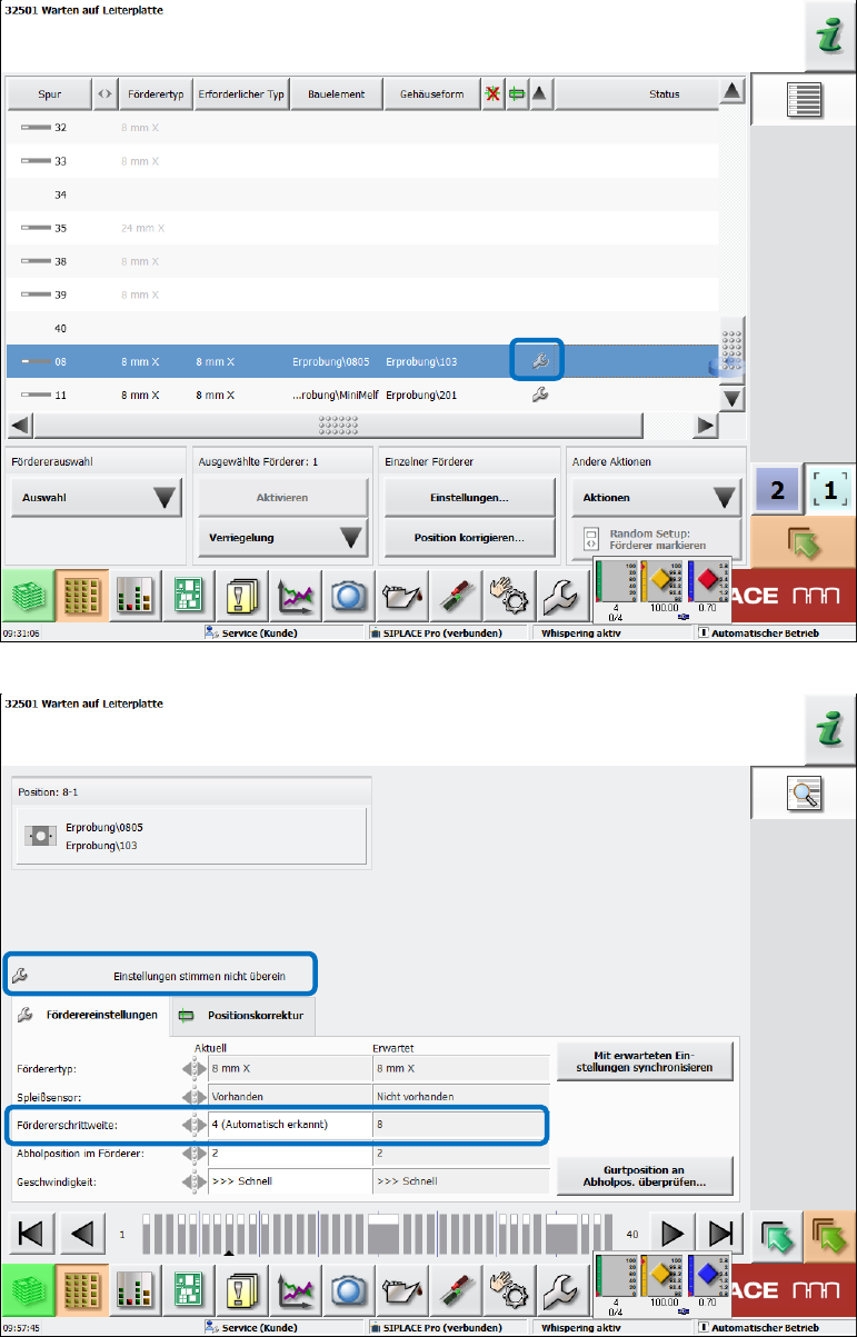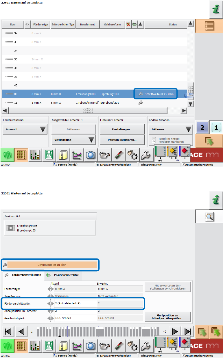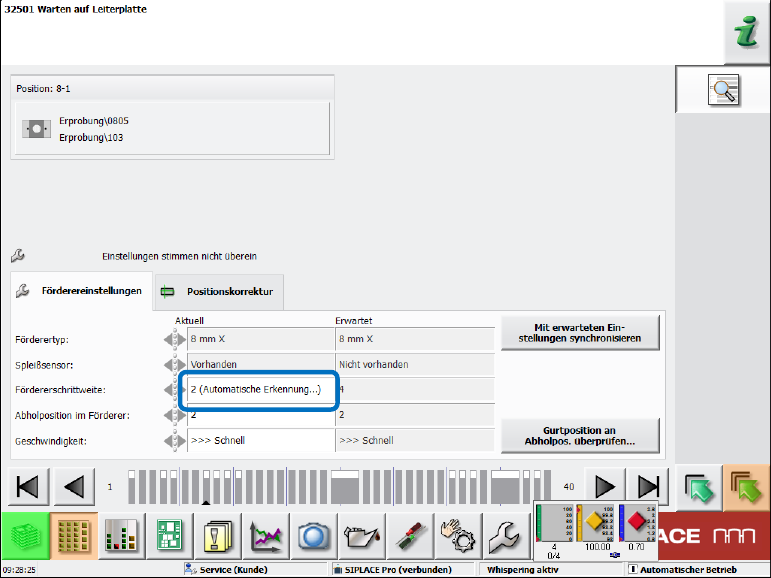 Abbildung 9-13: Erkennung der Fördererschrittweite aktiviert