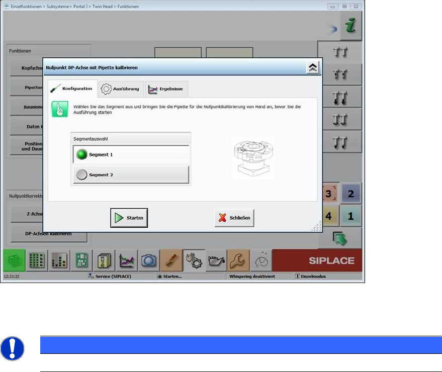 Kalibrierpipette auf ein Segment des Twin Heads anzubringen und dies in den Einzelfunktionen