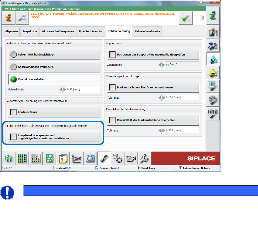 deaktiviert werden unter Einstellungen – Maschinenoptionen – Fehlererkennung.
