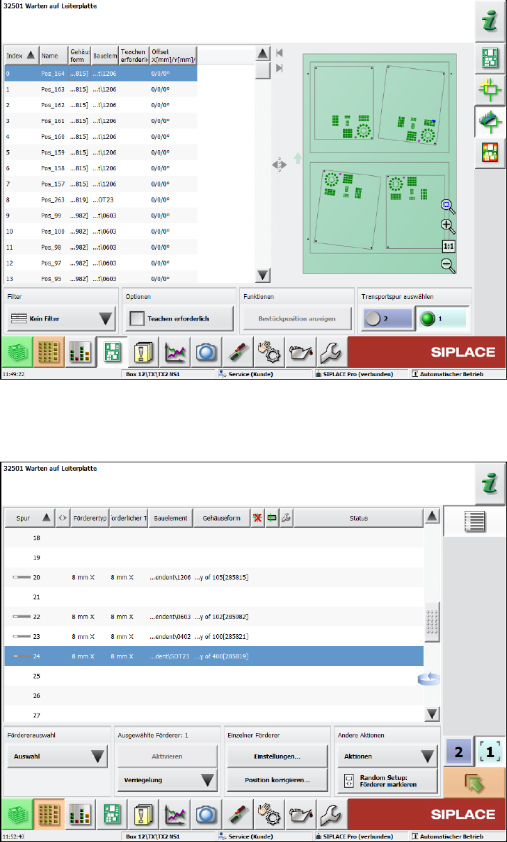 andere Transportspur weiter produziert, während der Bediener das Teachen durchführt.