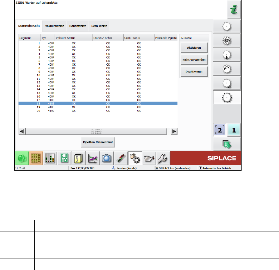 Transportspur noch aussteht. Alternativ könnte der Bediener den aktuellen Ablauf abbrechen, zu