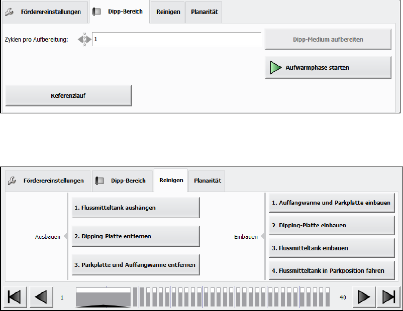 Rüstung der Förderer bedient. Folgende Aktionen können in den Registerkarten Dipp-Bereich