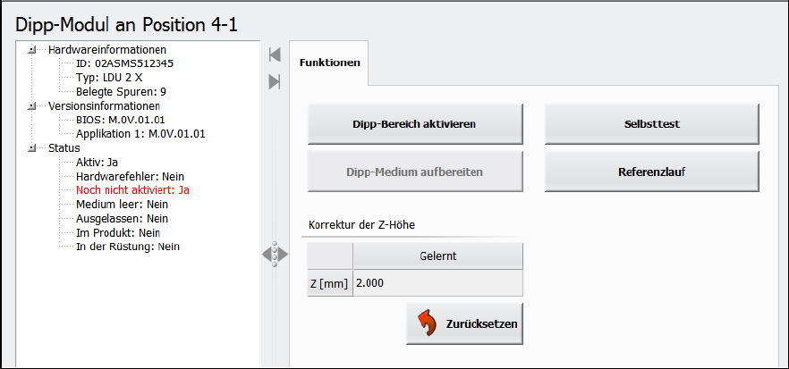 Das Linear Dipping Unit 2 X wird vollständig über die GUI der Stationssoftware in der Ansicht